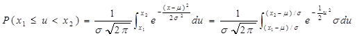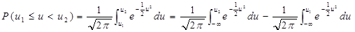P(u1≤u<u2)=Φ(u2)-Φ(u1)