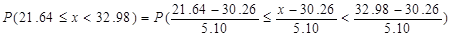 例3.15设x服从μ=30.26,σ2=5.102的正态分布,试求P(21.64≤x<32.98)。