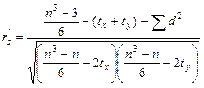 1.计算等级相关系数rs 先将变量x、y分别由小到大列出等级,相邻两数相同时,取平均等级;再求出每对等级之差d,利用(5-27)式计算等级相关系数: