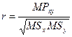 于是,样本相关系数r可用均方MSx、MSy,均积MPxy表示为: