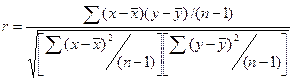两个相关变量线性相关性质与程度的相关系数的计算公式: