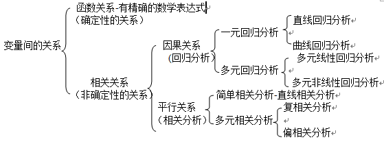 (2)复相关(多元相关):三个或三个变量之间的关系,即两个或两个以上自变量的因变量;