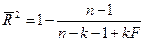 在样本容量一定的情况下,增加解释变量必定使得自由度减少,所以调整的思路是将残差平方和与总离差平方和分别处以各自的自由度,以剔除变量个数对拟合优度的影响。
