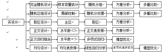 实验设计是基于研究目标、主动干预措施、观察和总结实验结果,回答研究假设提出的问题。实验设计必须遵循随机性、控制性和均衡性三个原则。常用的实验设计方法有完全随机设计、随机块设计、裂缝面积设计、拉丁方设计、正交设计、正交回归设计和均匀设计。