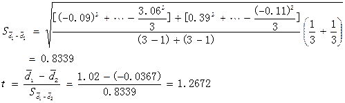 2×3交叉实验资料分析的t检验公式与2×2交叉实验资料分析的t检验相同。