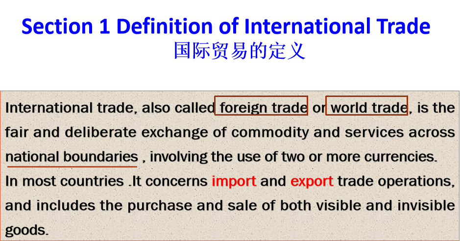 Section 1 Definition of International Trade