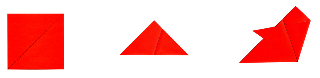 画成左右对称或上下对称的剪纸纹样,最后将其对折进行剪或刻。