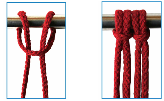 云雀结是以一根线为基本单位,对折做套后,套结在木轴、不锈钢管或其它横向线绳上,多应用在壁挂的编结上。