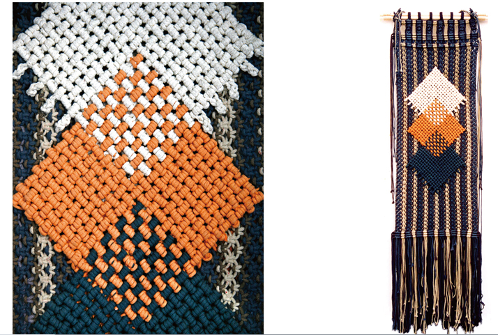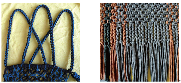 平结多以四根线或四组线为一个基本单位,上下编结可以形成扁带,适合做壁挂的挂带和小兜子的背带。多组上下左右连续编结可以形成平面。