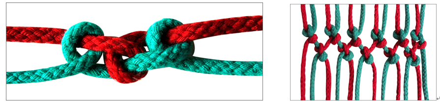 四根线为一组由平结转换成面的编结法