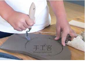 当作陶者需要较大面积的泥板时,可采用此法。制作时,最好先在工作台面垫上一层帆布,以免滚压后泥板粘住桌面,无法移动。步骤如下:
