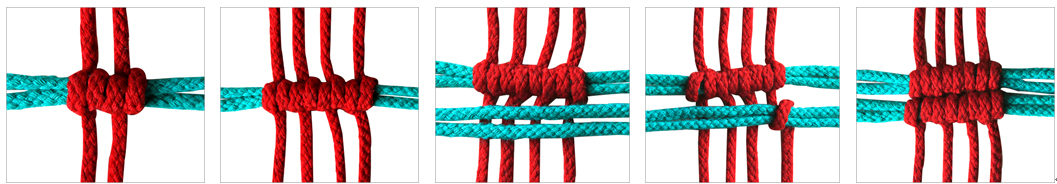 步骤四 整理并拉紧的套结完成图,每条线绳经套结两次为易;