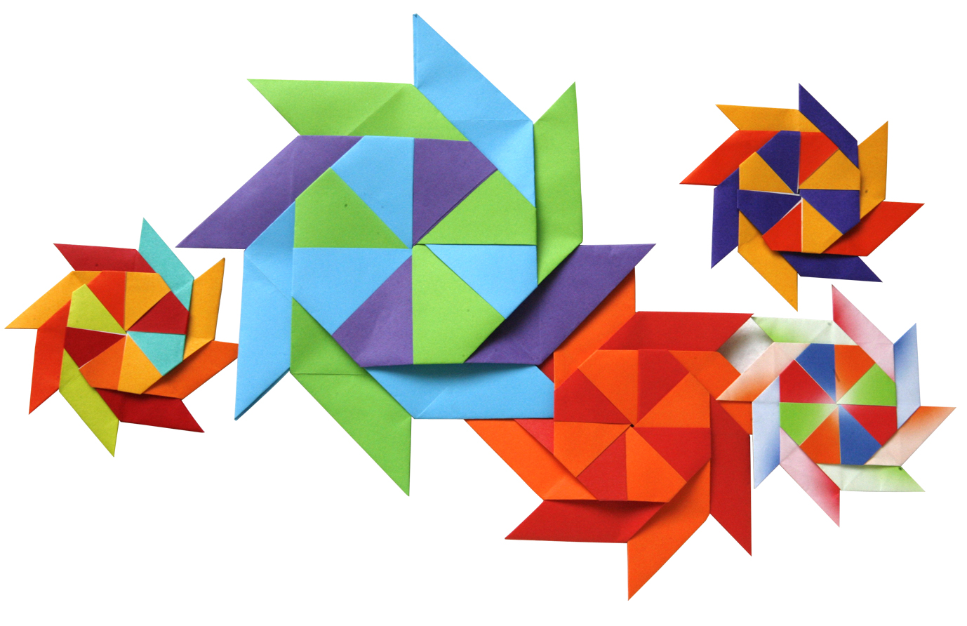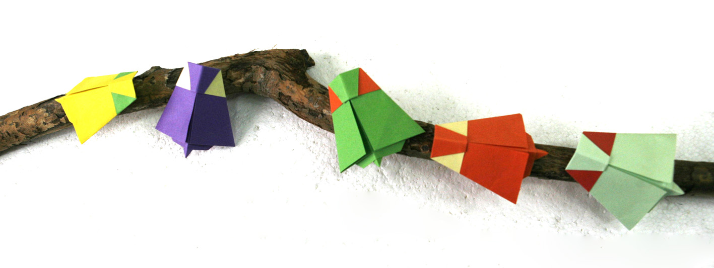 折纸的纸张最好是选用60-70克彩色纸、花纹纸或废旧宣传广告纸。如果选用的纸张较厚,折纸时就不易操作,折痕也容易断裂。折纸的基本折法包括对边折、对角折、集中一角折、四角向中心折、双正方折、双三角折、单菱形折、双菱形折、卷折、向内嵌折、向外翻折、压折痕迹后拉开袋子和多件折纸的穿插组合等。造型美观的折纸形象多以双正方折、双三角折、单菱形折、双菱形折的基本折法为开始,同时运用了向内压折、向外翻折、压折痕迹后拉开袋子的折法,所以,下面重点介绍这些最为常用的基本折法: