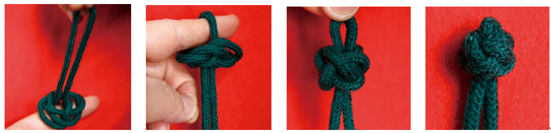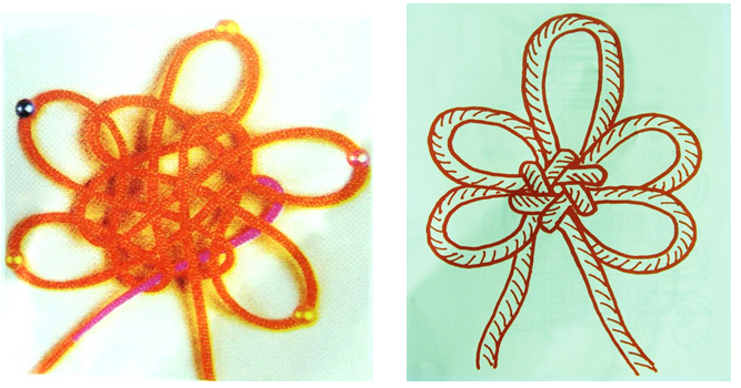 有些基本结可以独立形成编制物,也可以和其他结进行组合编制成绳编作品,这些绳编基本结可以应用到很多方面,下面介绍杯垫、纽扣和中国结的编制方法。