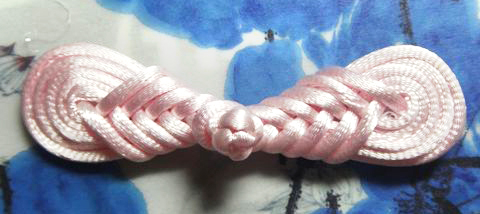 传统绳编纽扣主要应用于旗袍纽扣,制作纽扣时,最常用的方法就是运用纽扣结的编结方法,采用的绳材一般为棉绳。纽扣结还可以作为珠状的装饰物,应用在饰品上。