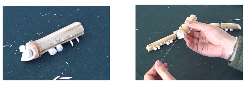 (二)插接:有的品种秸秆需要将材料切割成段,然后用插接的形式塑造立体的玩教具。