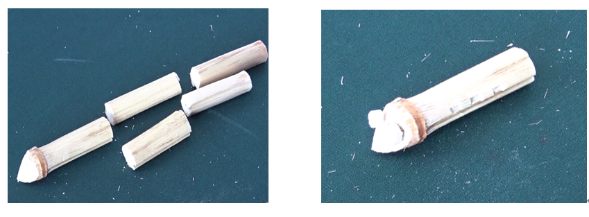 (一)切割:由于秸秆类材料粗细长短不均,要根据作品的需要进行分段切割。