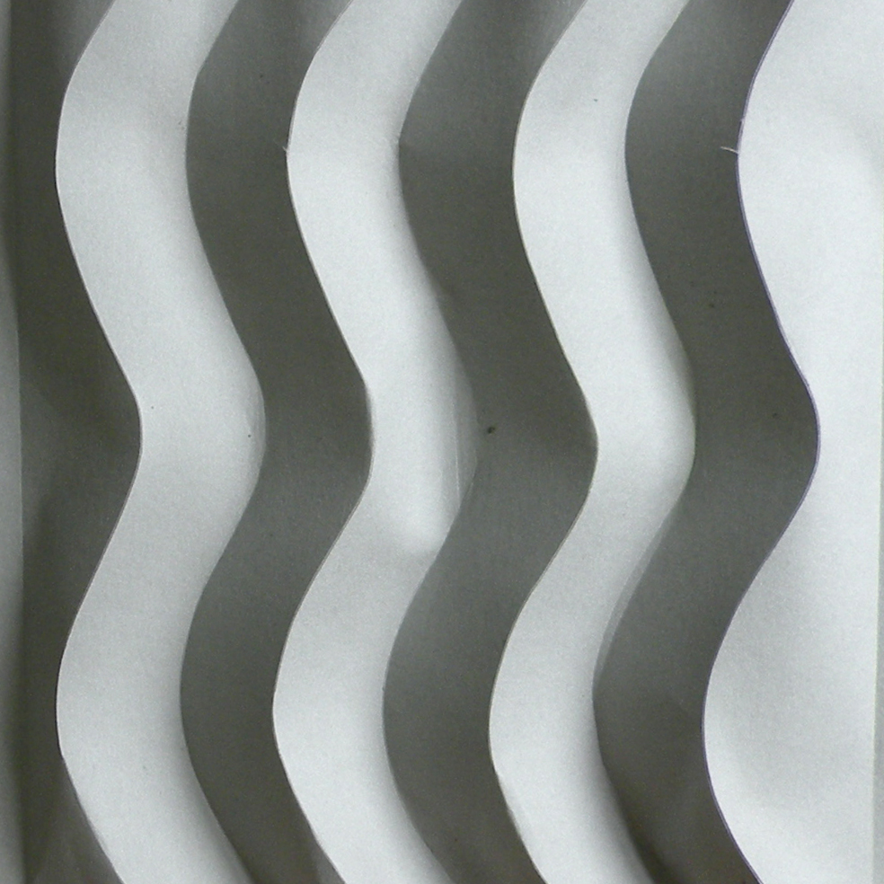 平面纸张形成半立体浮雕式的方法是先在纸上画切割线,虚线表示用刀在厚纸上割痕(即半切),其方法是用刀切割时只需轻轻划过,出现极浅的割痕即可折叠凹凸成型,需要注意的是应在凸起面的虚线上割痕。实线表示用刀将厚纸割断即全切,其方法是在实线上用刀切割,切割时要割透纸面,然后错位粘合连接。