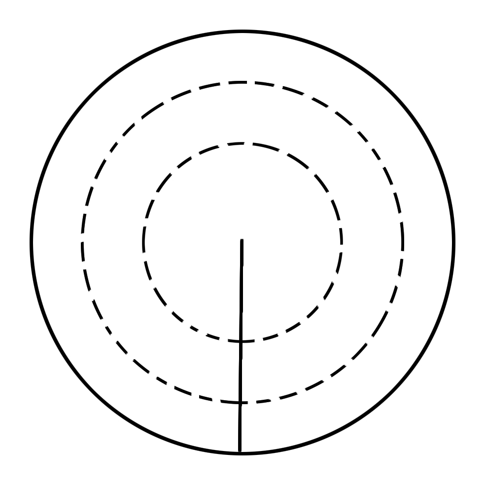 步骤三在纸的正面画上一个圆形,再由圆心向外画一条直实线;