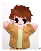 设计手偶,设计时要突出角色的形象特点,造型简单、可爱。