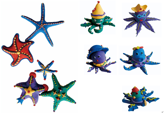 海洋动物中种类繁多,形状特征各异,学会捏塑海洋动物对拓宽学前教育专业学生的美术视野大有益处。通过海洋动物的捏塑,可以锻炼学生如何在简单造型上面进行图案添加和色彩的夸张性处理,还可以与其它材料结合使用,比如:纤细的肢体可以用塑料吸管代替,大家在捏塑的过程中不必拘泥形象原本的细节,可大胆进行想象,尝试多种多样的处理手法,不断提升彩塑造型的审美内涵和使用功能。