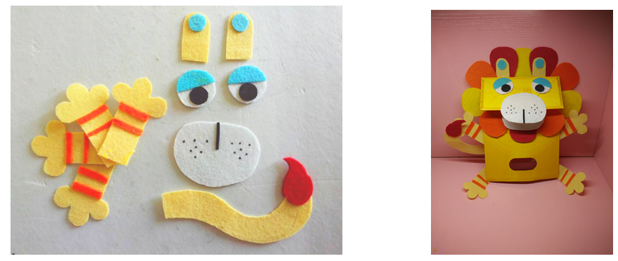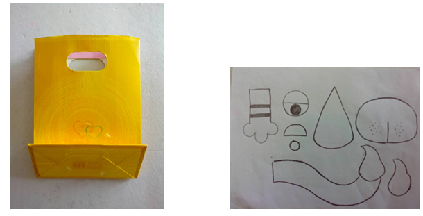 利用袋类材料进行造型时,构思可从服装道具或吊饰入手,逐步拓展到游戏环节的造型联想。并与其它材料,如EVA、彩色卡纸、管类材料的进行综合运用,让作品更具有立体感和观赏性。