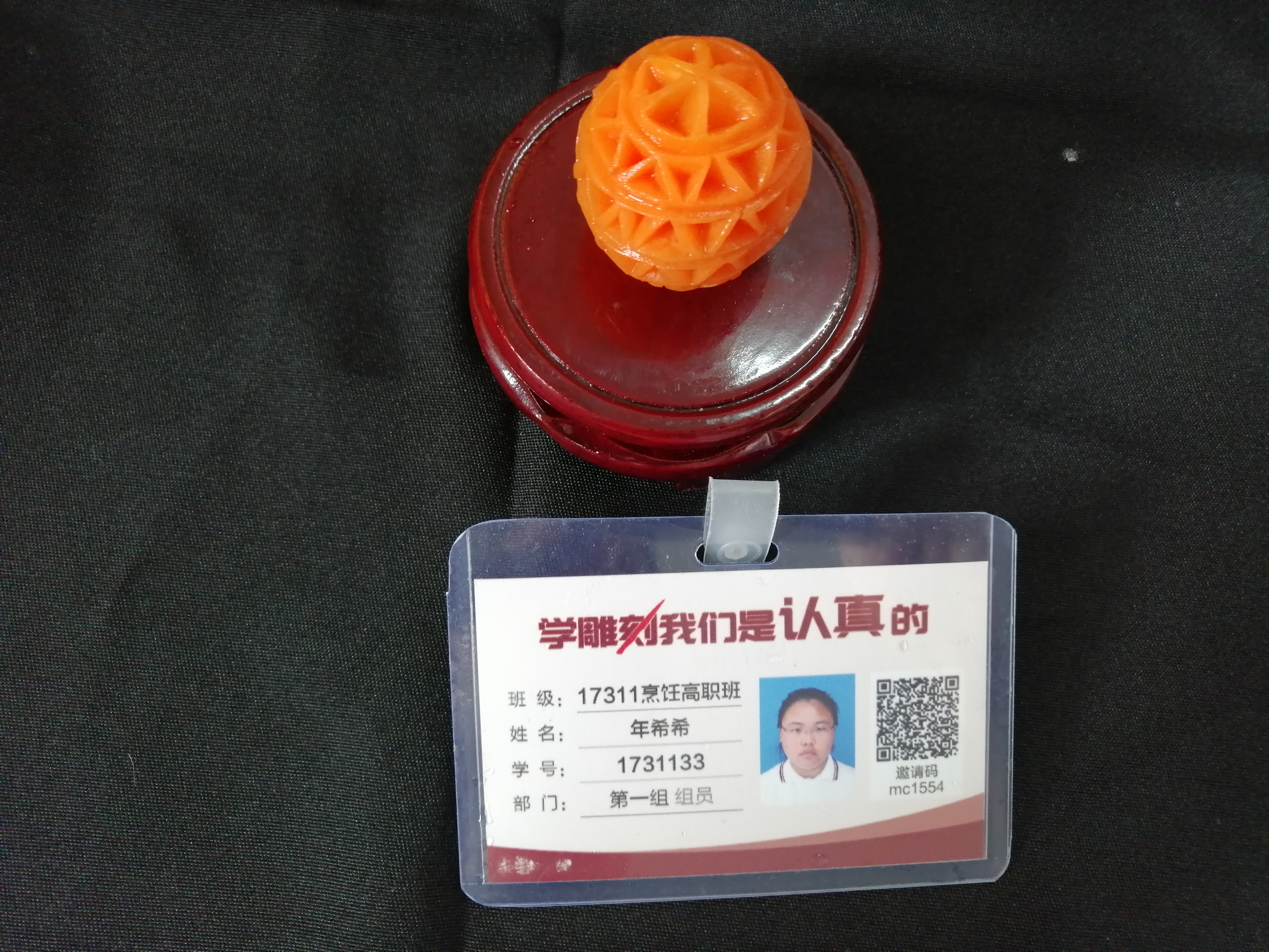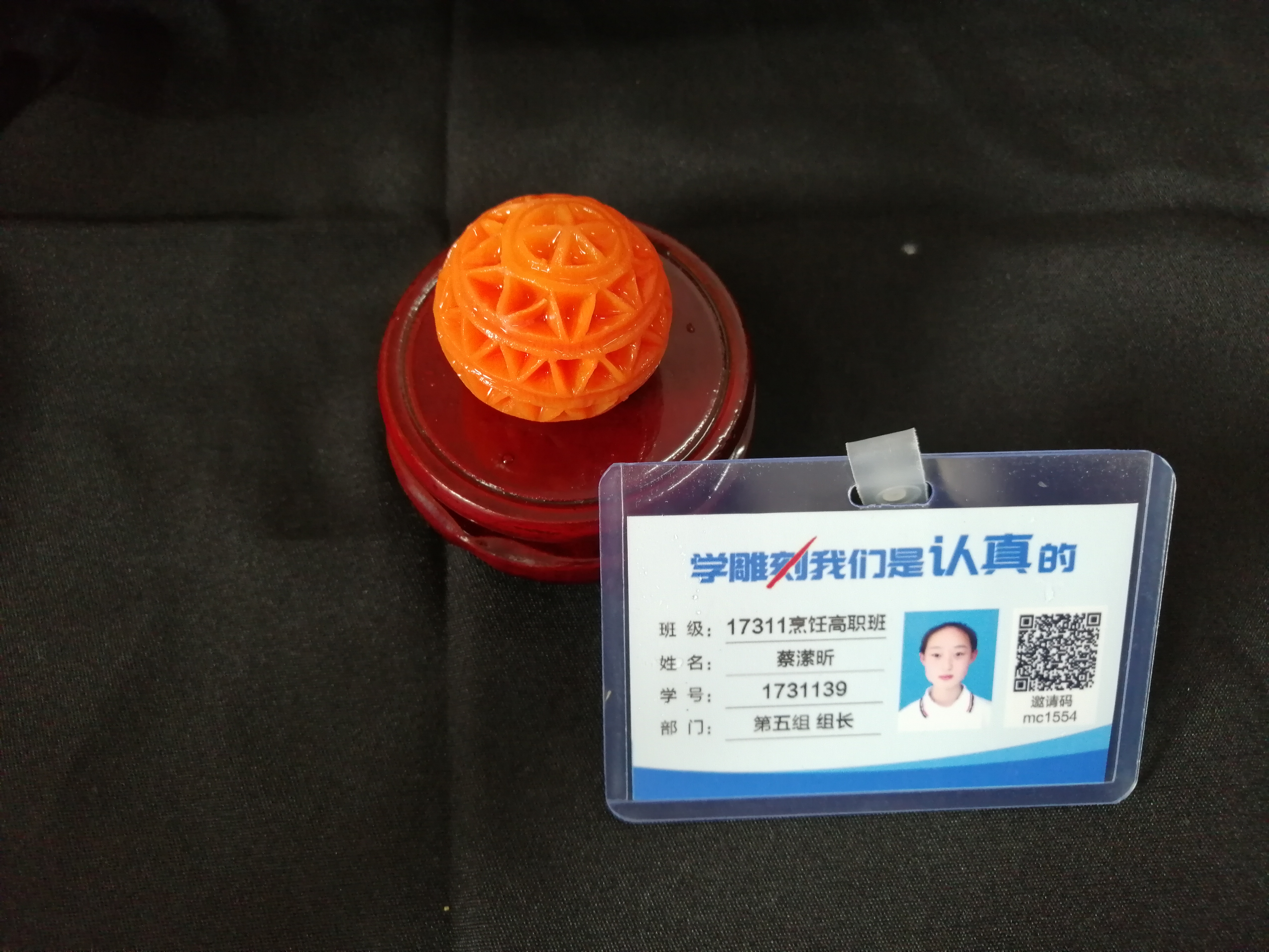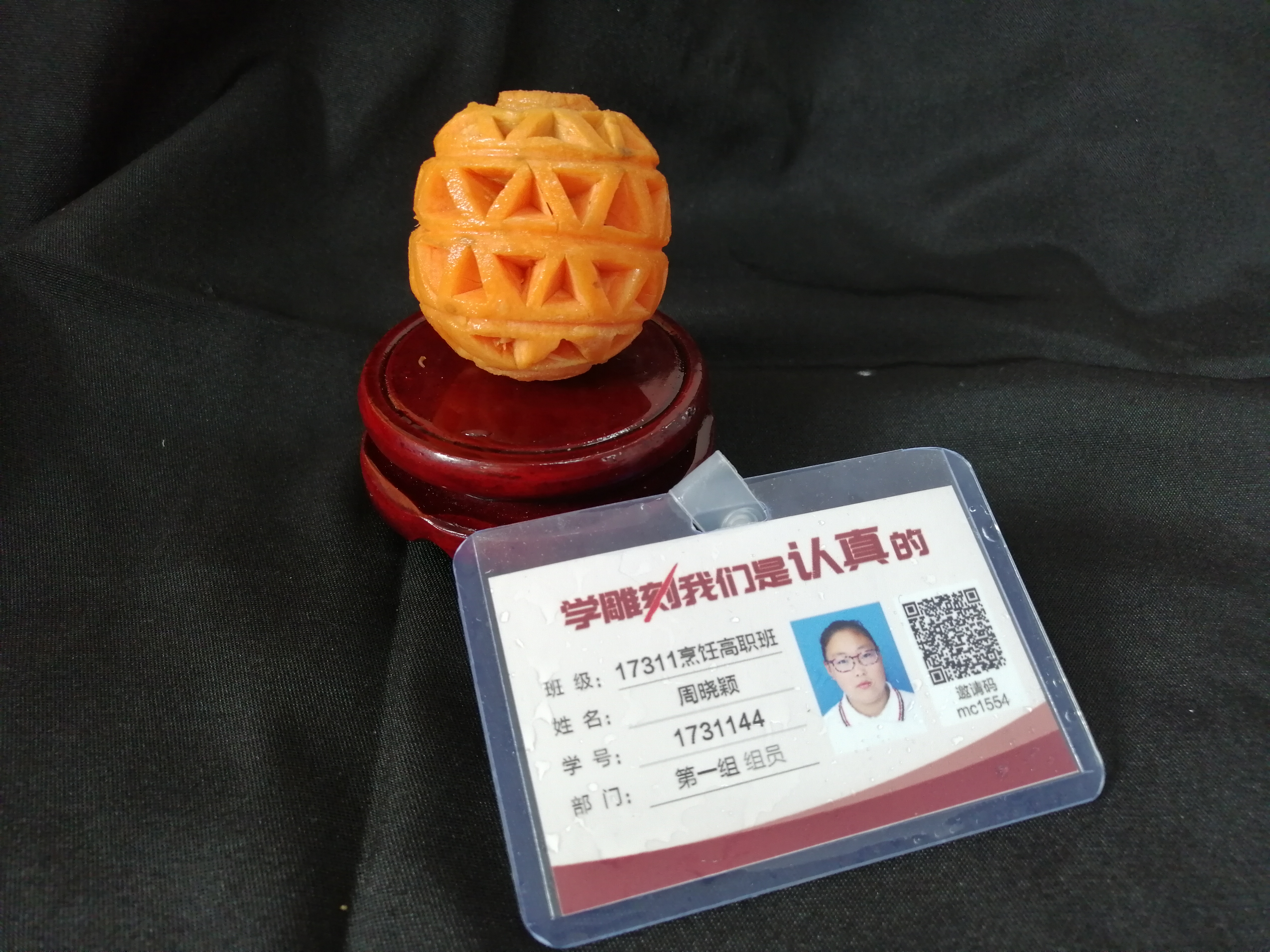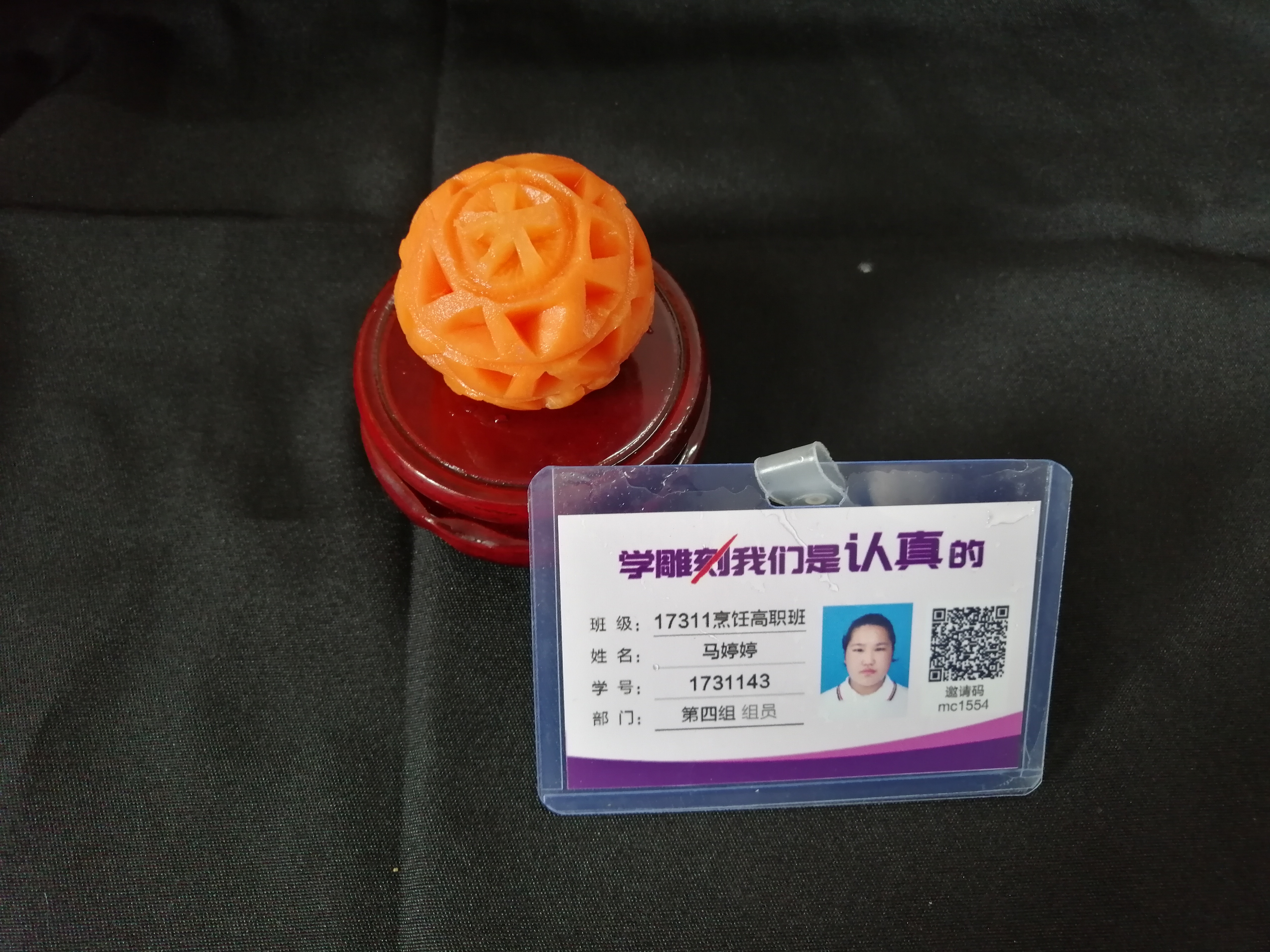 胡萝卜:选择质地较为坚实、色泽鲜艳的胡萝卜作为雕刻材料,它易于雕刻且能呈现出较好的效果。