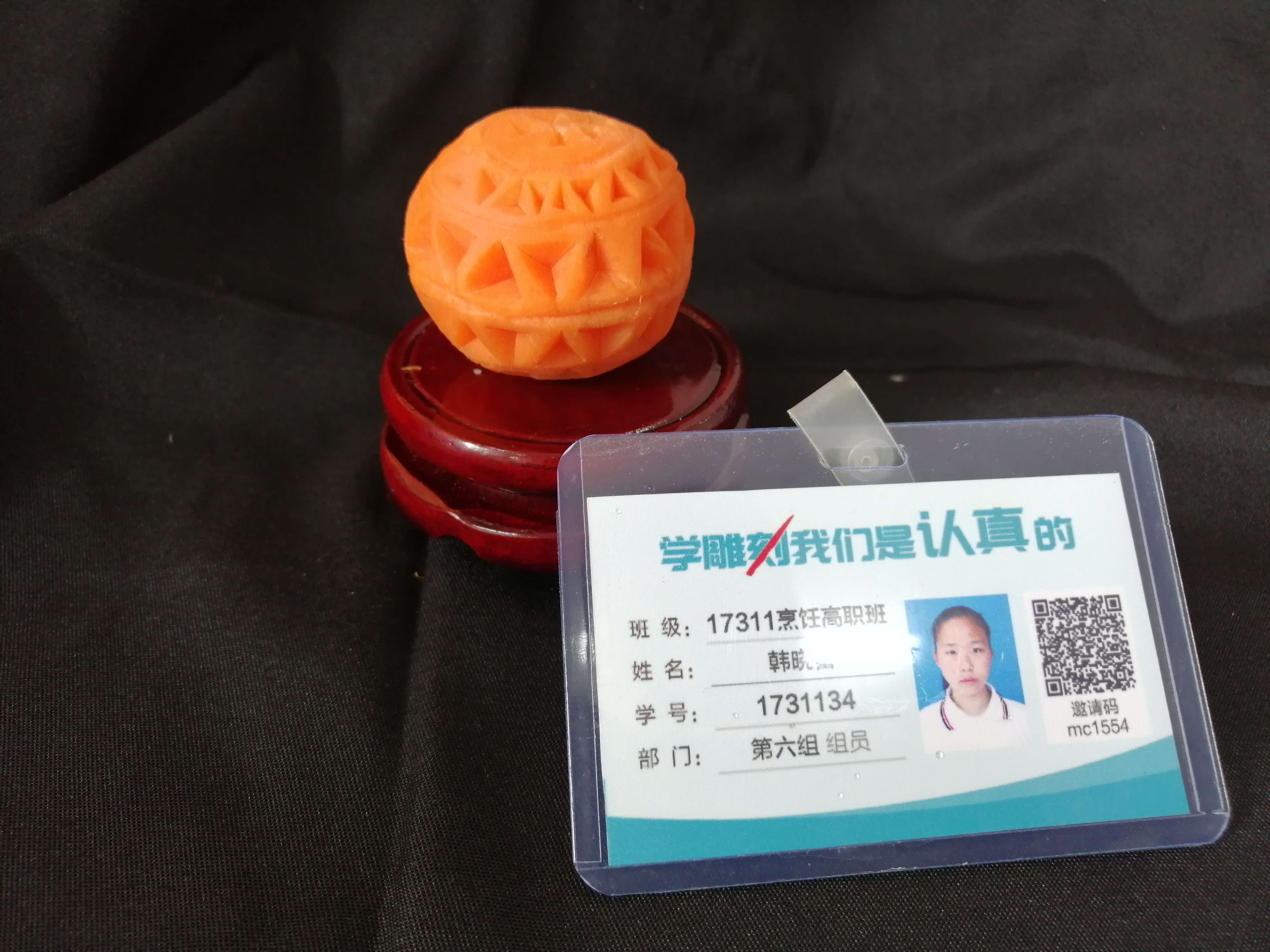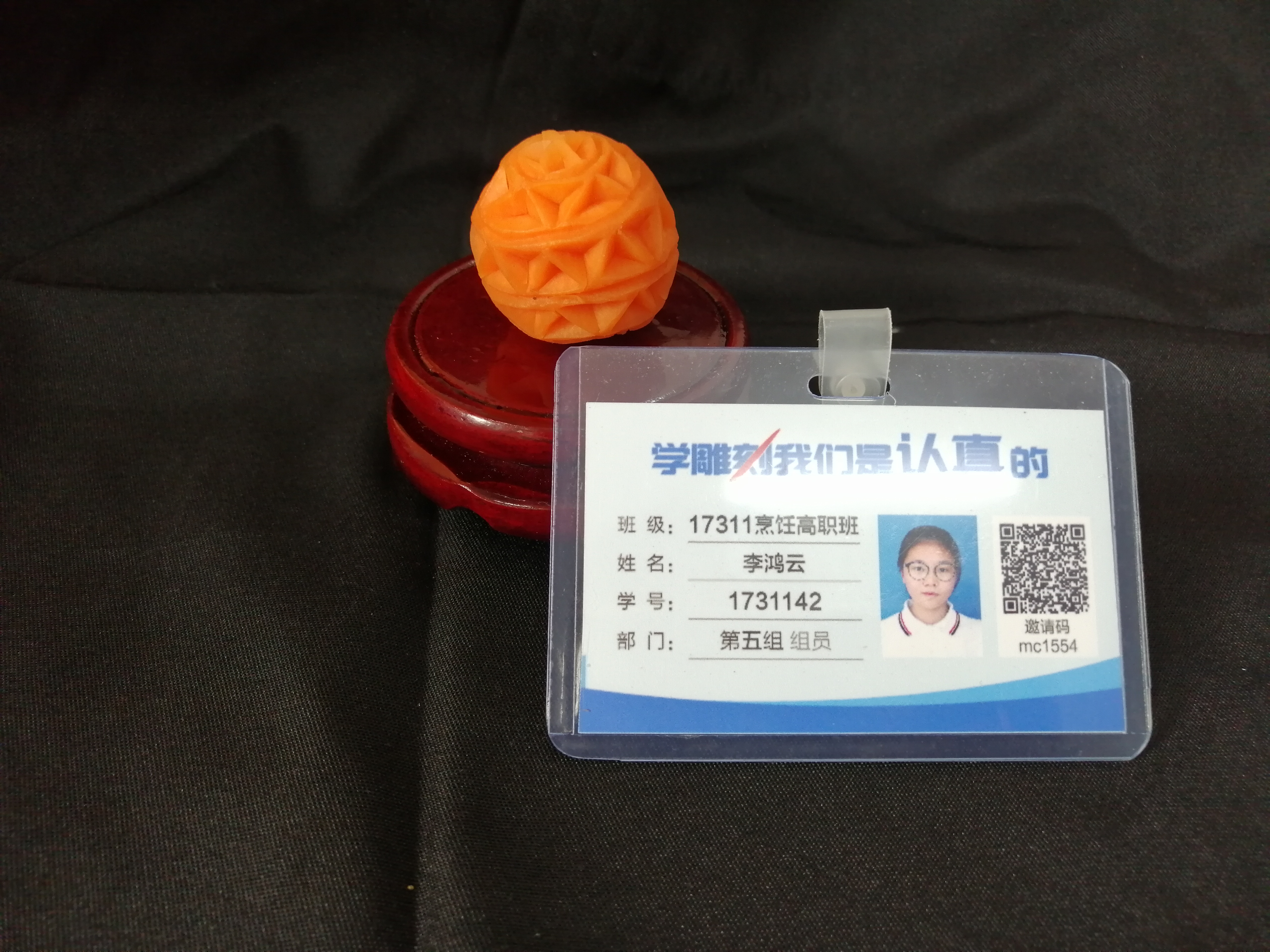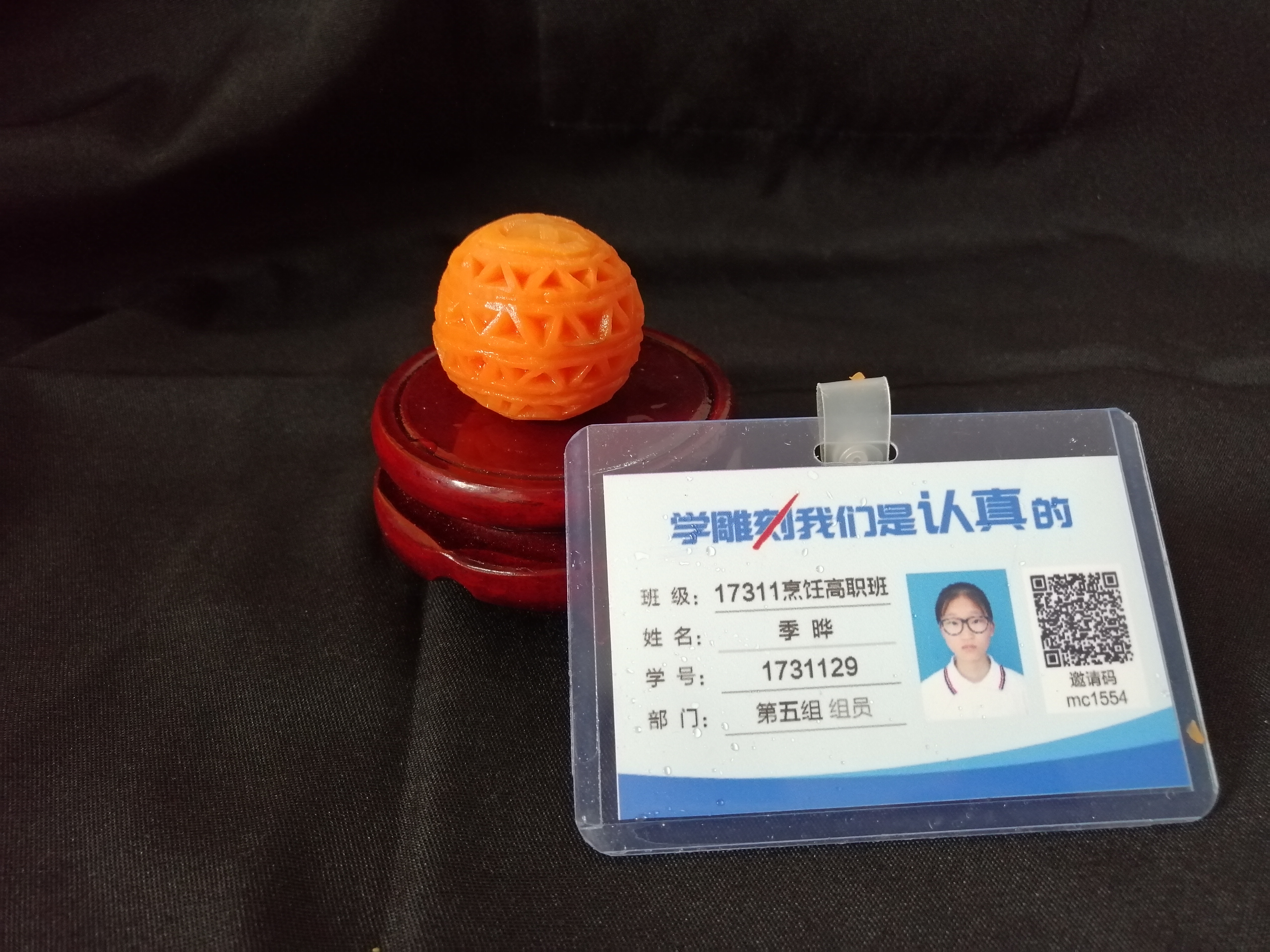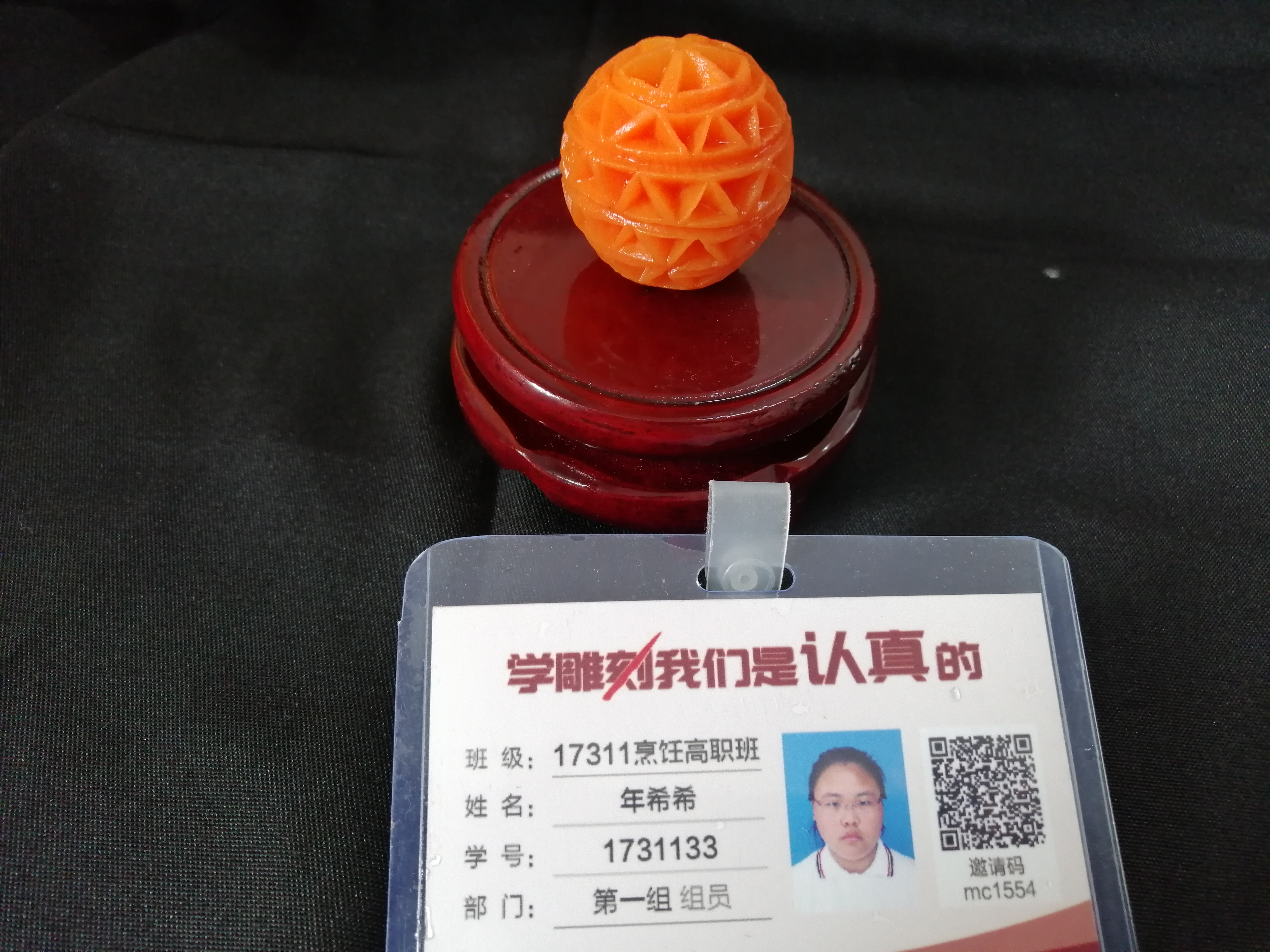 胡萝卜:选择质地较为坚实、色泽鲜艳的胡萝卜作为雕刻材料,它易于雕刻且能呈现出较好的效果。