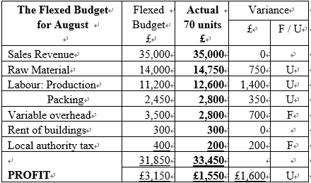 2 Prepare a comparison between the budgeted figures and actual figures at the relevant activity level.