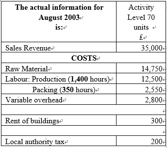 1. You are asked to produce budgets for the 3 activity levels in August 2003 identifying profit at each level of activity.
