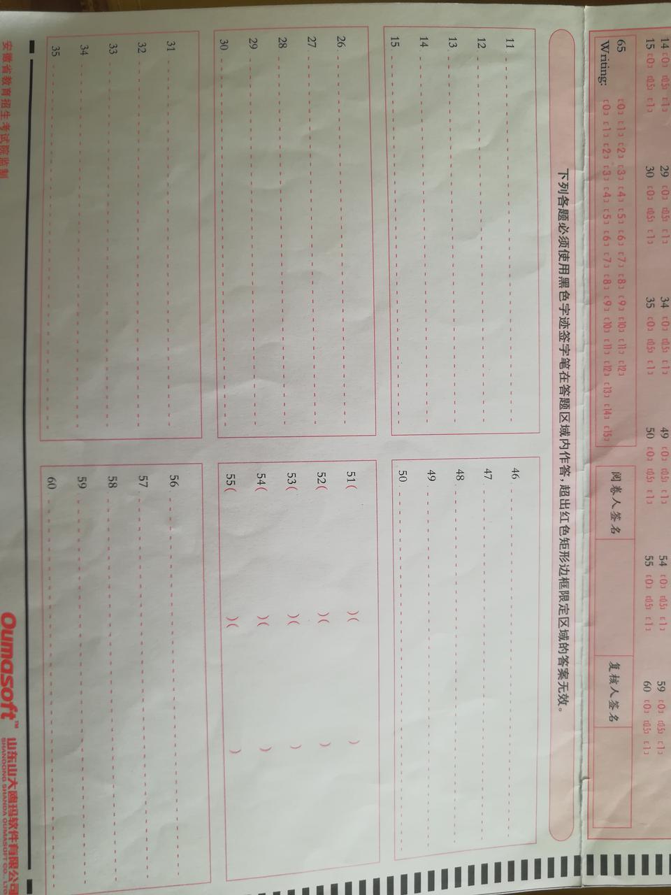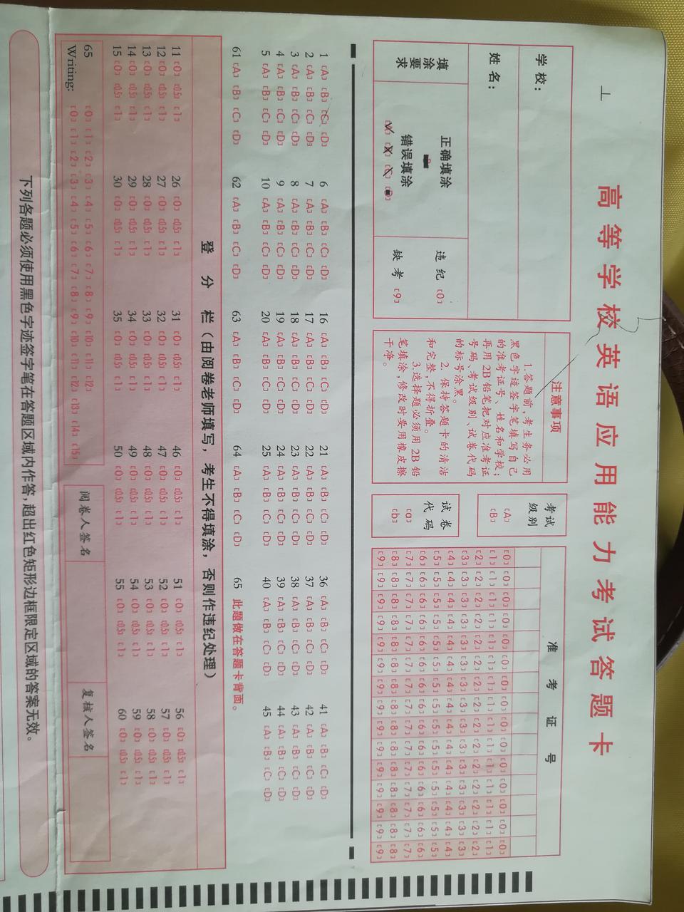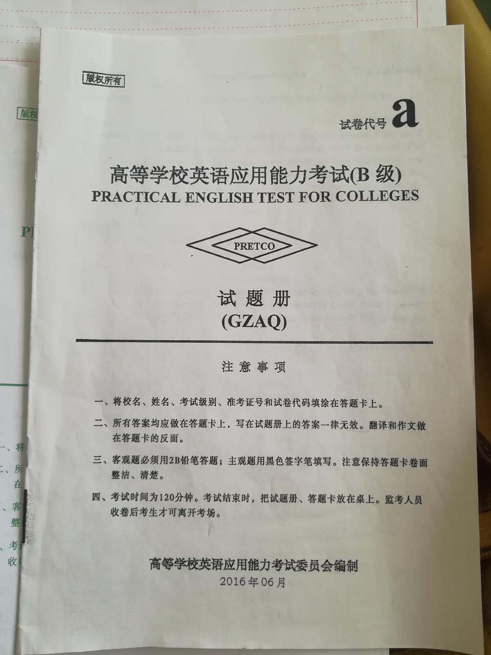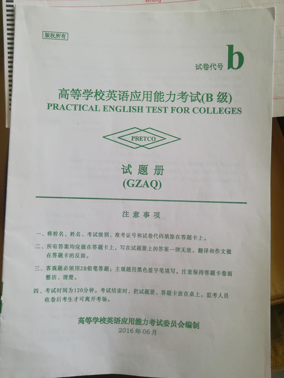 B级真题,答题卡