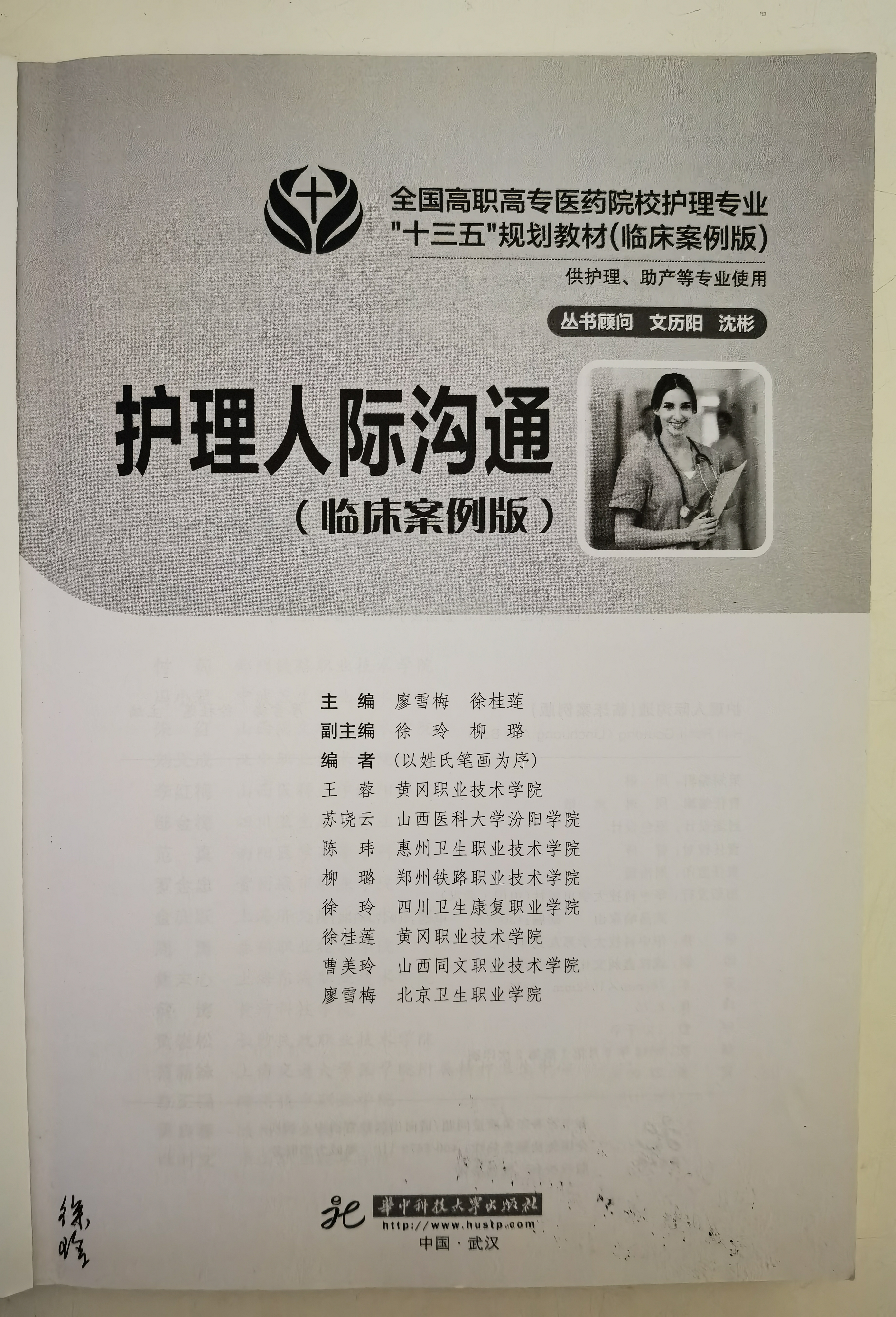 4.2016年1月华中科技大学出版社《护理人际沟通》副主编;