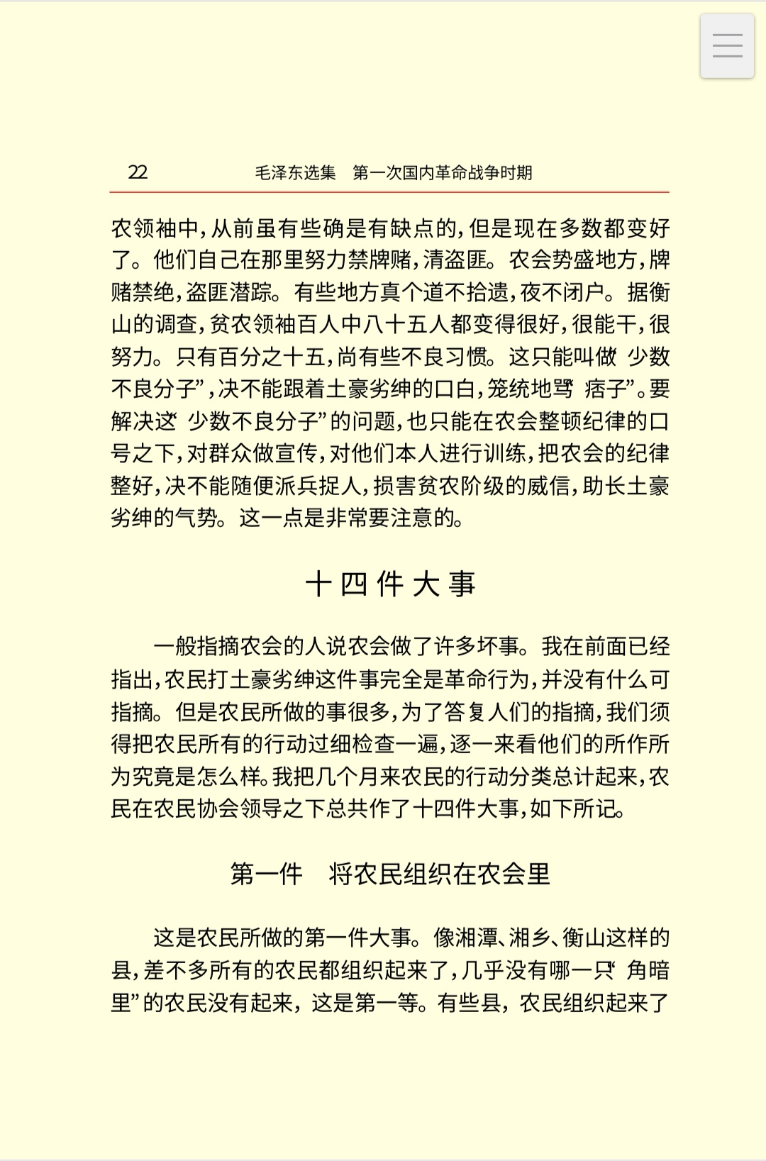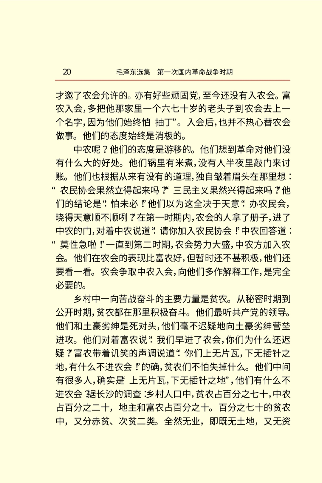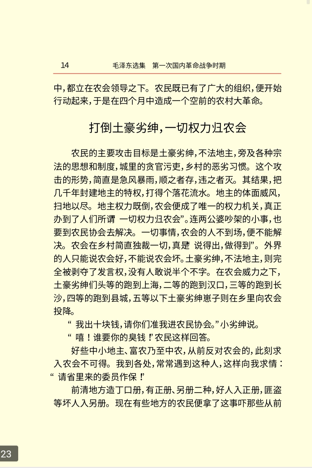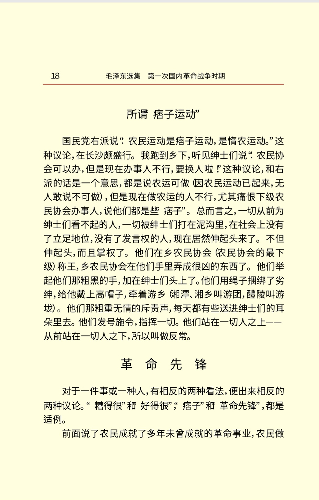 经典文献阅读1(著作)毛泽东选集第一卷《湖南农民运动考察报告》
