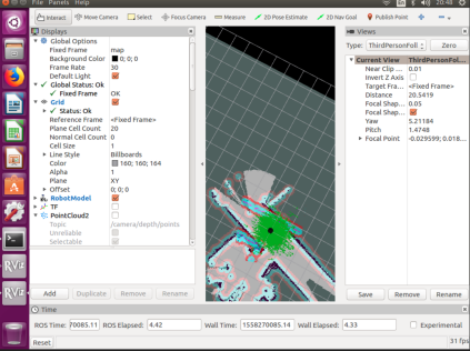 点击2D Pose Estimate键,然后按住不松手,设置方向,如图我们已经更改了机器人到正确的初始位置。
