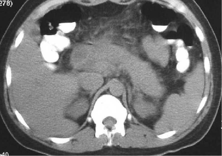 急性胰腺炎(acute pancreatitis,AP)是多种原因导致胰腺组织自身消化而 引起的胰腺水肿、出血及坏死等炎性损伤。临床以发作性上腹疼痛、血 与尿淀粉酶或脂肪酶增高为特征。按病理组织学和临床表现可分为轻症急性胰腺炎和重症急性胰腺炎,前者约占90%,病情轻,以胰腺水肿为主,有自限性,数日后可完全恢复,预后良好。后者病情较重,胰腺出血坏死,常伴多器官损伤、休克、渗出性腹膜炎等,病死率较高。