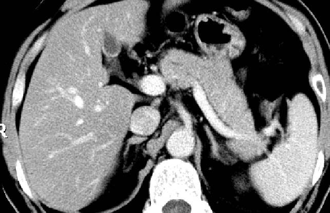 CT-胰腺实质密度增高或降低,体积增大,胰周浸润。