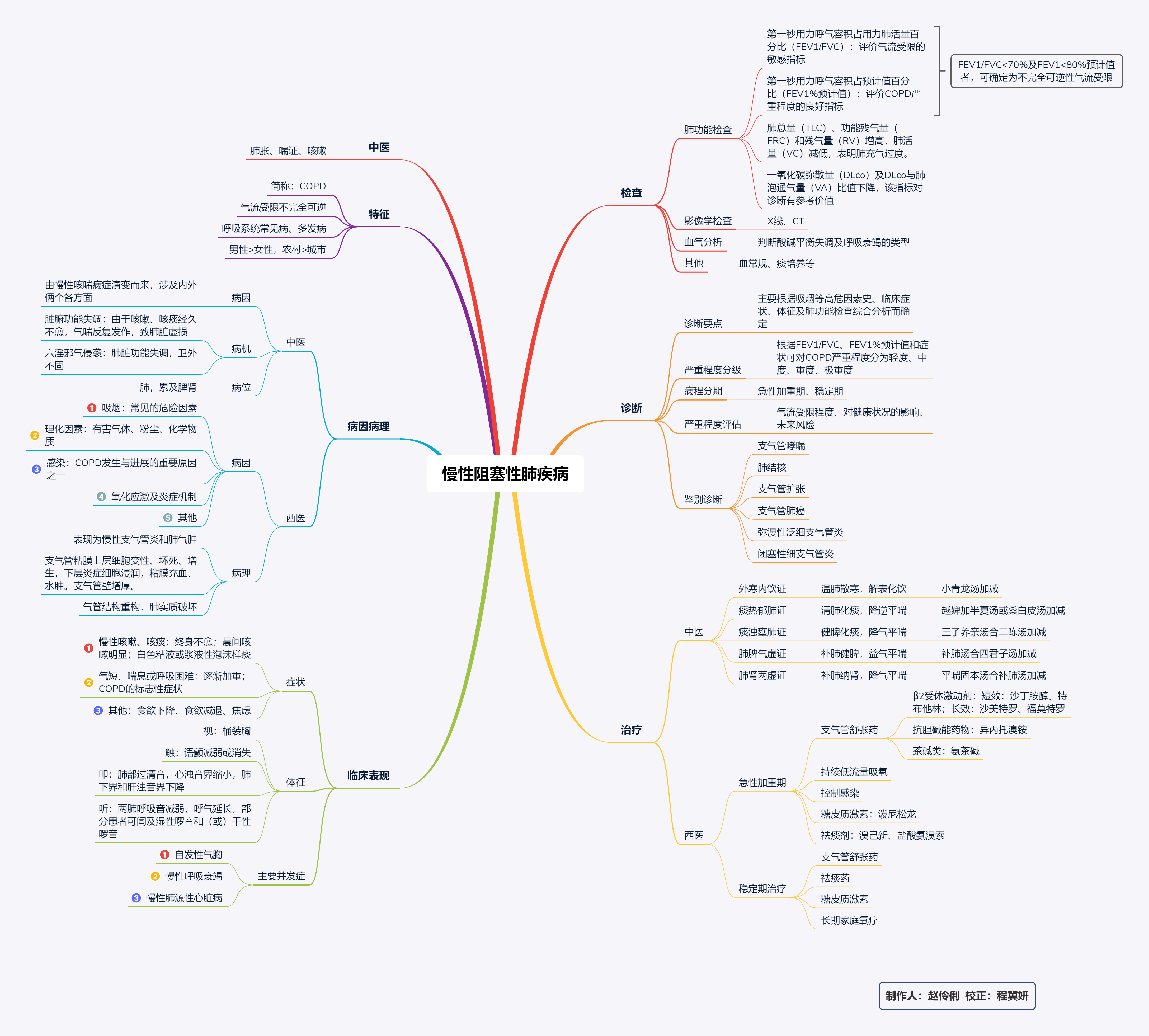 COPD的西医治疗,急性发作期可选择有效抗菌药物控制感染,同时配合祛痰等药物以改善症状。中医治疗急性发作期以化痰宣肺清热为主,稳定期则重在补益肺脾肾。中西医结合治疗有利于急性发作期病情的稳定,同时对于稳定期可用综合肺康复的方法来改善患者的临床症状,提高生存质量。