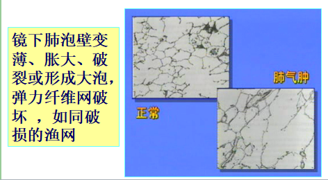 临床上呼吸气腔均匀规则扩大而不伴有肺泡壁的破坏时,也常习惯称为肺气肿,如代偿性肺气肿、老年性肺气肿、Down综合征中的先天性肺气肿等,临床也可以出现劳力性呼吸困难和肺气肿体征,但肺功能测定没有气流受限的改变,即FEV1/FVC≥70%,与COPD不同。