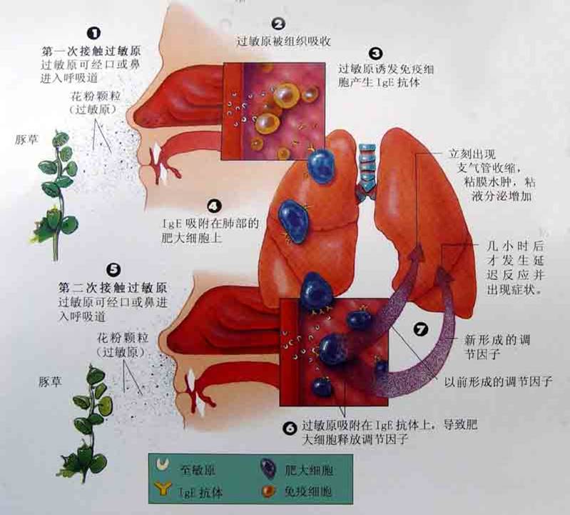 总之,哮喘的炎症反应是由多种炎症细胞、炎症介质和细胞因子参与的相互作用的结果,关系极为复杂,有待深入研究。
