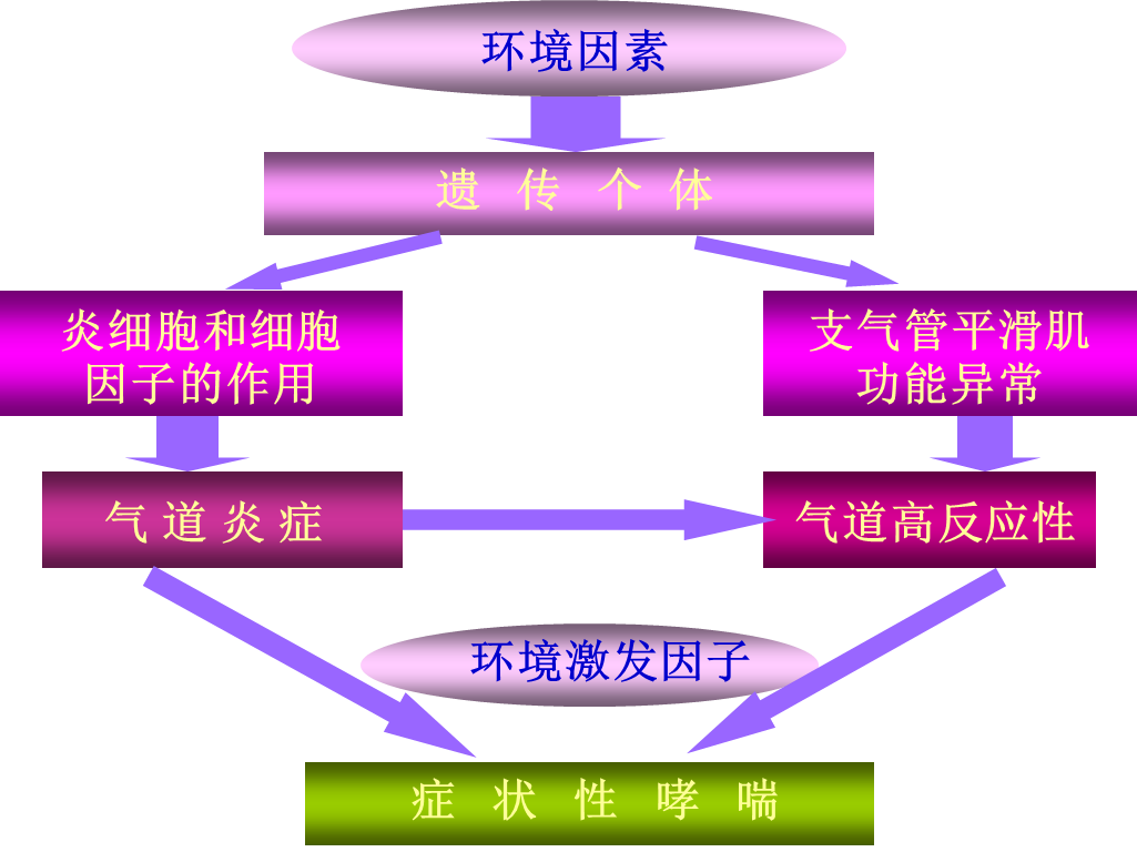 目前认为哮喘多数是在遗传的基础上受到体内、外某些因素激发而产生。