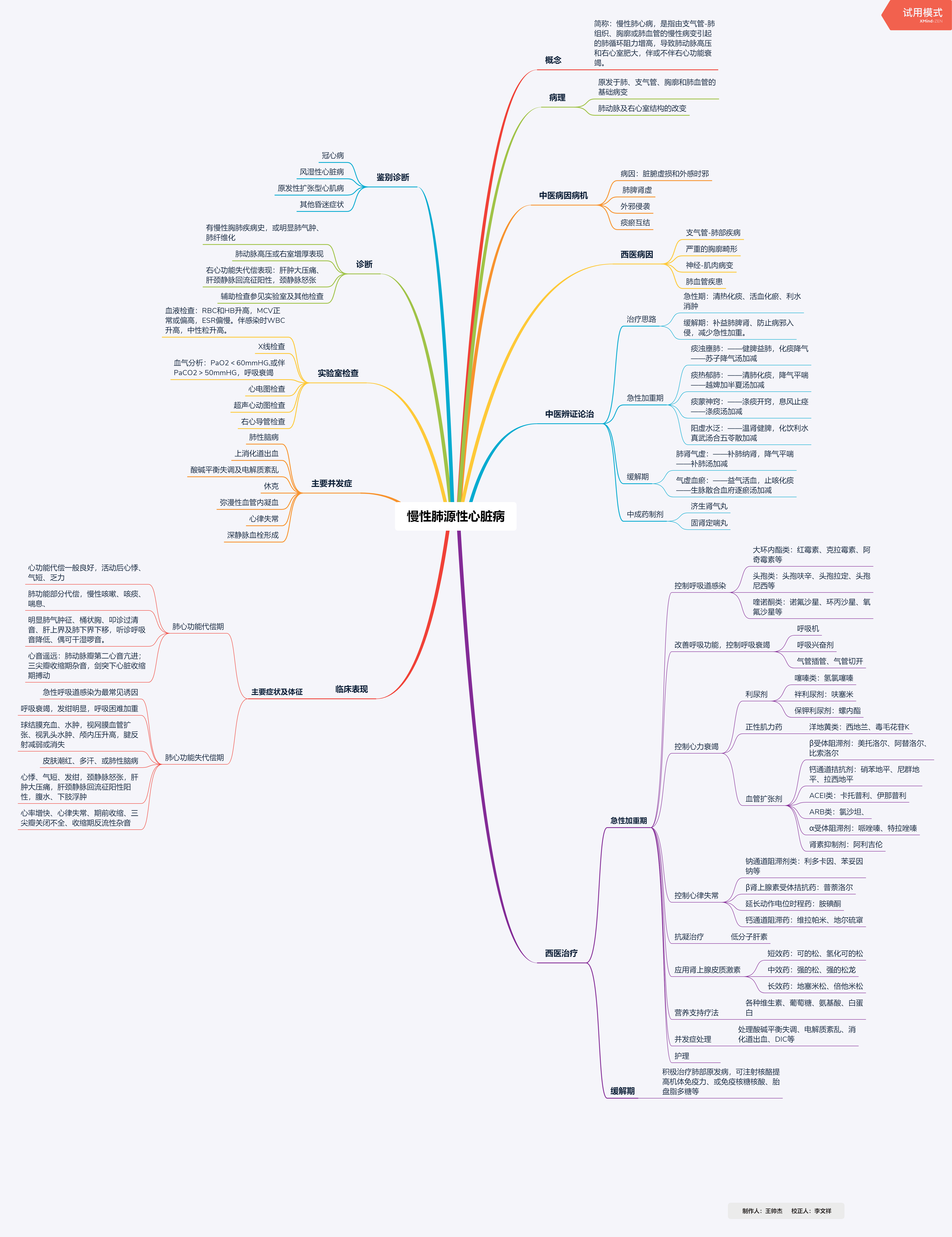 本病急性加重期以西医治疗为主,结合中医辨证施治,如清热化痰、活血化瘀、利水消肿等。缓解期以中医治疗为主,补益肺脾肾,防止病邪入侵,以减少急性加重。