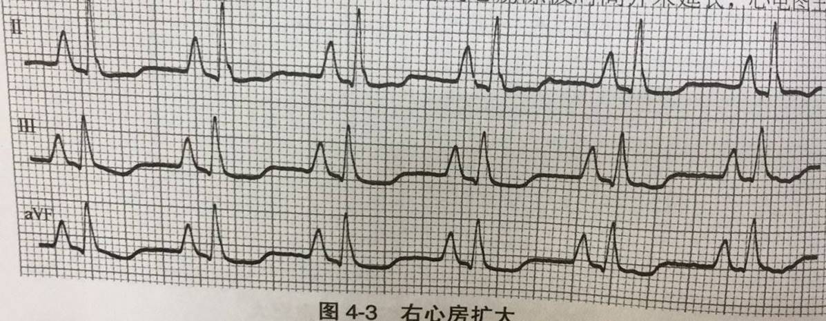 电轴≥90度。肺型P波,Rv1+Sv5>1.05Mv,V1 R/S≥1,右束支传阻,低电压,V1-V3出现类似陈旧性心梗QS、Qr、qr波。