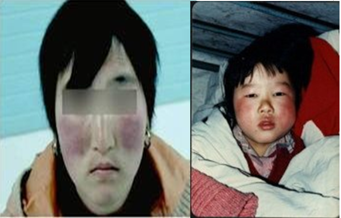 症状:心悸气短,胸痛憋闷,或咯痰咳血,两颧紫红,甚者面色瘀暗、唇紫,舌质瘀暗或有瘀点,脉细数或结、代。