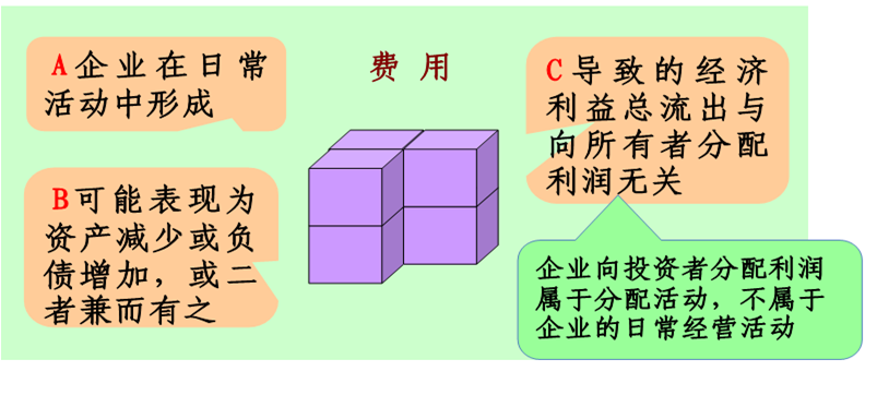 费用是指企业在日常活动中发生的、会导致所有者权益减少的、与所有者分配利润无关的经济利益的总流出。
