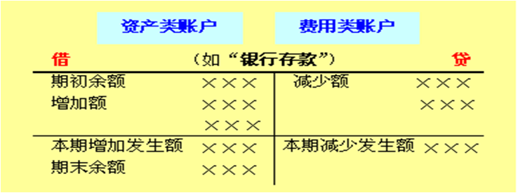 在借贷记账法的发展过程中,逐渐形成了根据账户的性质来确定“借方”“贷方”的增减含义的做法。如今,约定俗成的账户结构是:资产类、费用类账户的借方登记增加额,贷方登记减少额;负债类、所有者权益类、收入类账户的借方登记减少额,贷方登记增加额。