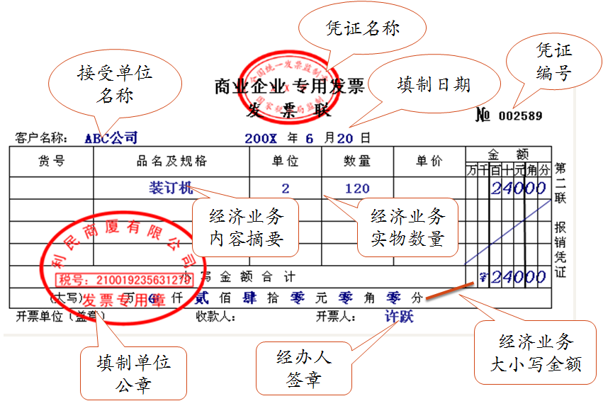 各个单位经济业务多种多样、各不相同,其经营管理的要求也不同,因而作为记录经济业务、明确经济责任的原始凭证的内容和格式也各不相同。原始凭证一般具备以下基本内容: