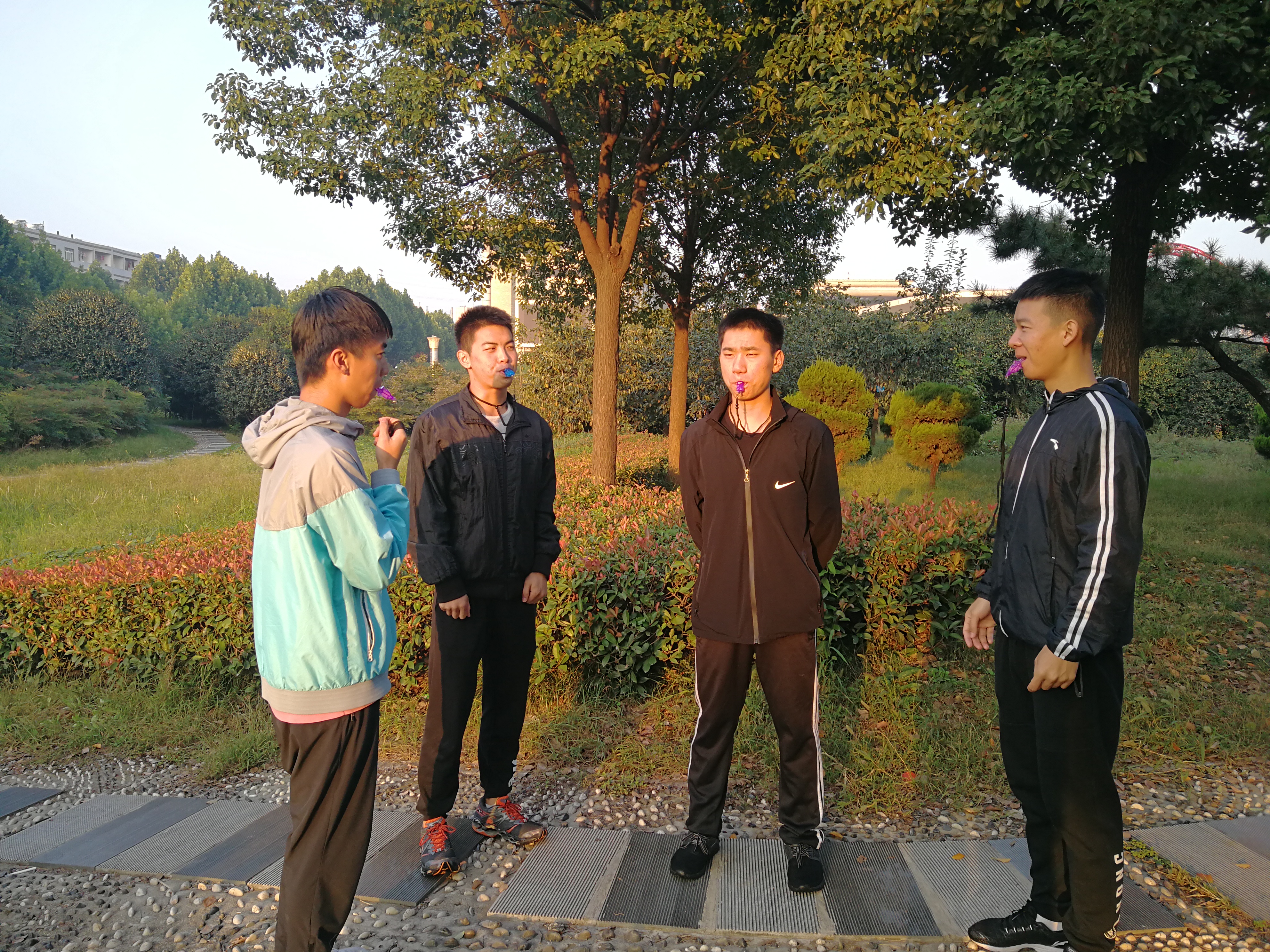口令呼喊:全体集合,立正,向右看齐,向前看,稍息,立正,