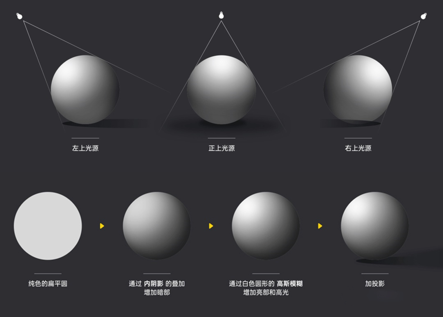 三大面:物体受光后一般可分为三个大的明暗区域:亮面、灰面、暗面