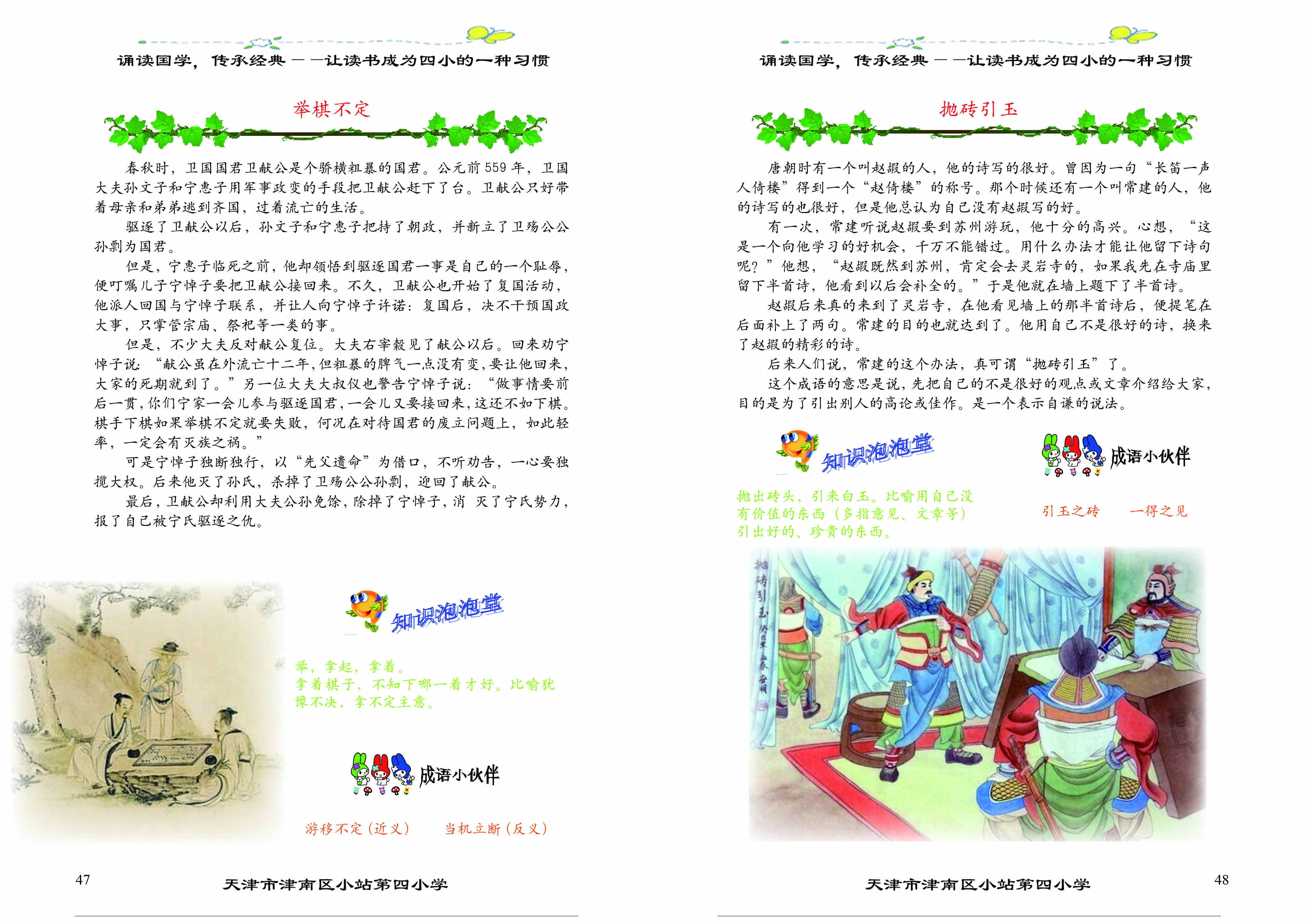 《举棋不定》、《抛砖引玉》、《高山流水》、《囫囵吞枣》