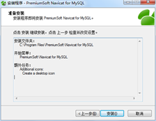 步骤6: 在“准备安装”窗口中,安装程序即将安装PremiumSoft Navicat for MySQL,如图2-36所示。